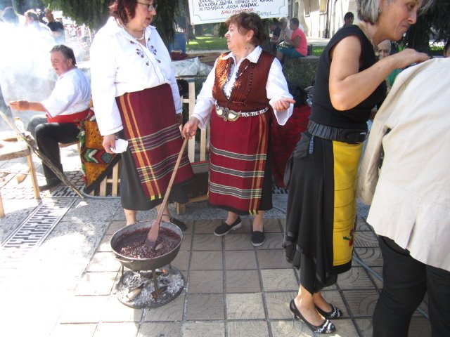 Но на  мястото, където бяха майсторите на различни занаяти имаше само един казан за варене на ракия и около него се беше струпала опашка от нетърпеливи любители на сливовата , за да опитат прясното питие Mr. Green Така, че нямахме възможност да направим дегустация на различни майстори на ракията. Wink  Но пък опитах превъзходен конфитюр от сливи, както и си пийнахме истински айрян от краве мляко. Е, после и биричка естествено Wink