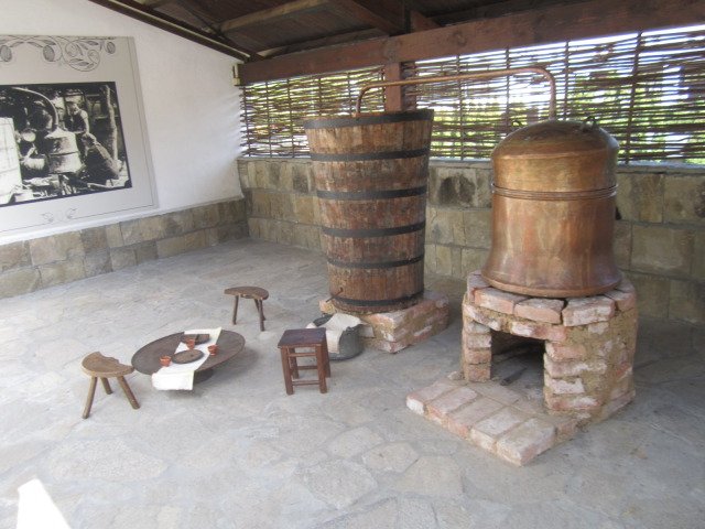 Посетих и изложба, в която има предмети и снимки с надписи за историята и начина на производство на сливова ракия. Понеже е в двора на едно заведение на входа ни посрещна този надпис, който ни привлече вниманието  Laughing