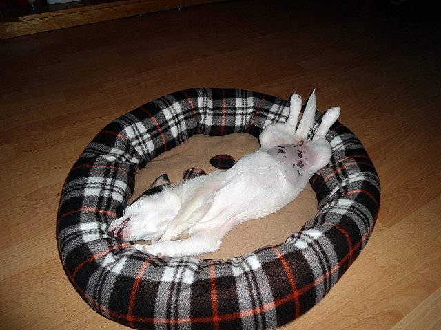 От няколко вечери се престрашавам и оставям Бела да спи в хола вместо в коридора. Голям кеф й е. Ама като имах незабравен ужас от едно такова преспиване в детските й дни, когато станала рано и надребнила няколко шепи от килима.   #Cussing out Сега поне я знам, че като отцепи сутрин ние трябва да я будим за разходката.  Crazy