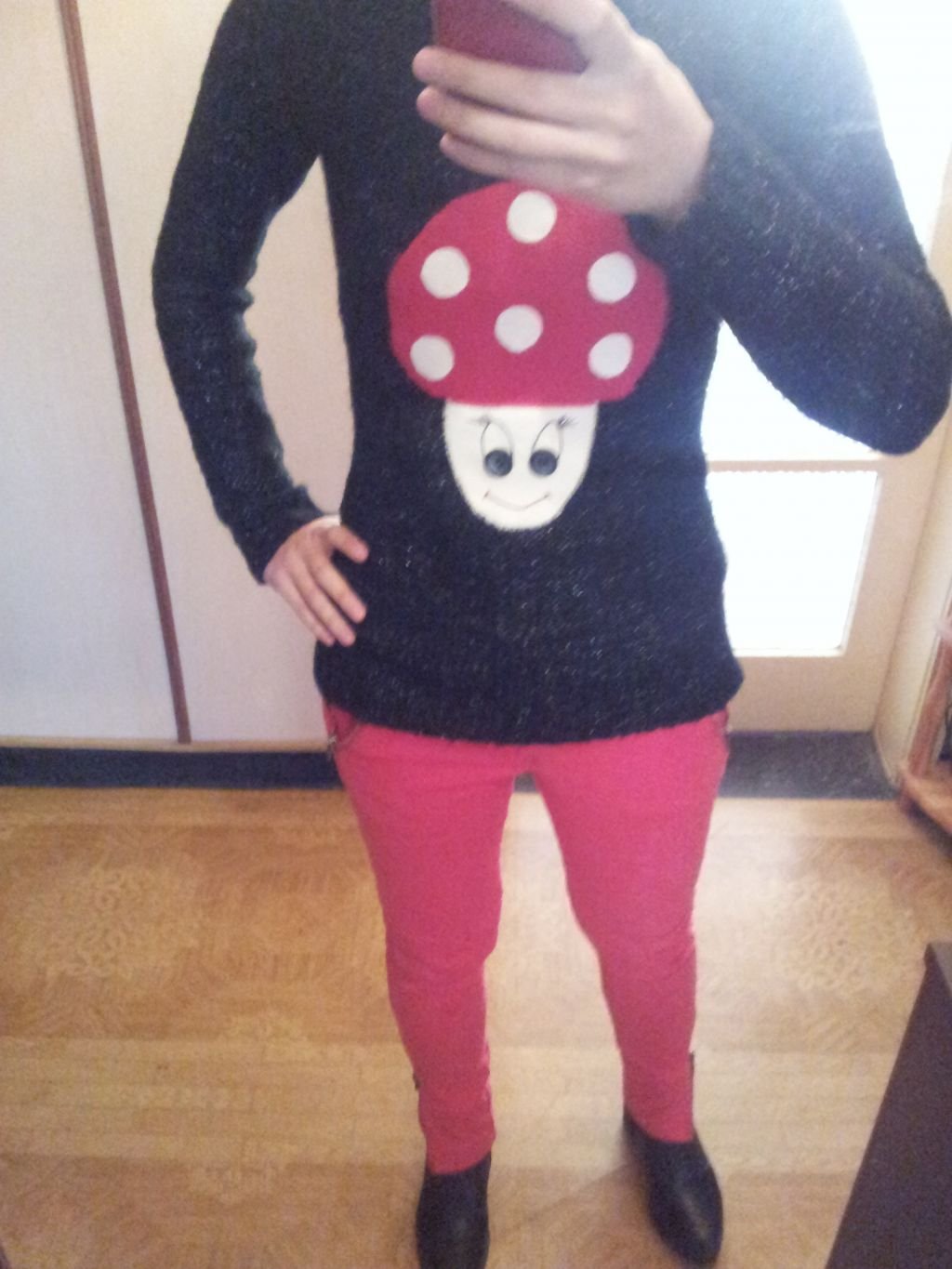 Аз вчера гепих едно чисто черно пуловерче за 2.50лв. и му плеснах една гъбка за декорация  Laughing