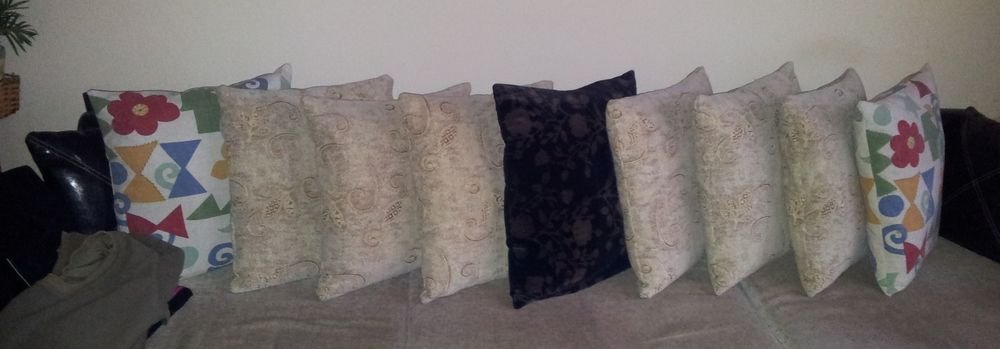 Аз ходих до Зиг Заг онзи ден да видя за останали платове, ама то нищо нямаше, всичко беше опоскано. Все пак си изнамерих едно перде и го разрязах и си направих 2 калъфки за възглавници с цип /крайните шарени/ Има плат за още 2