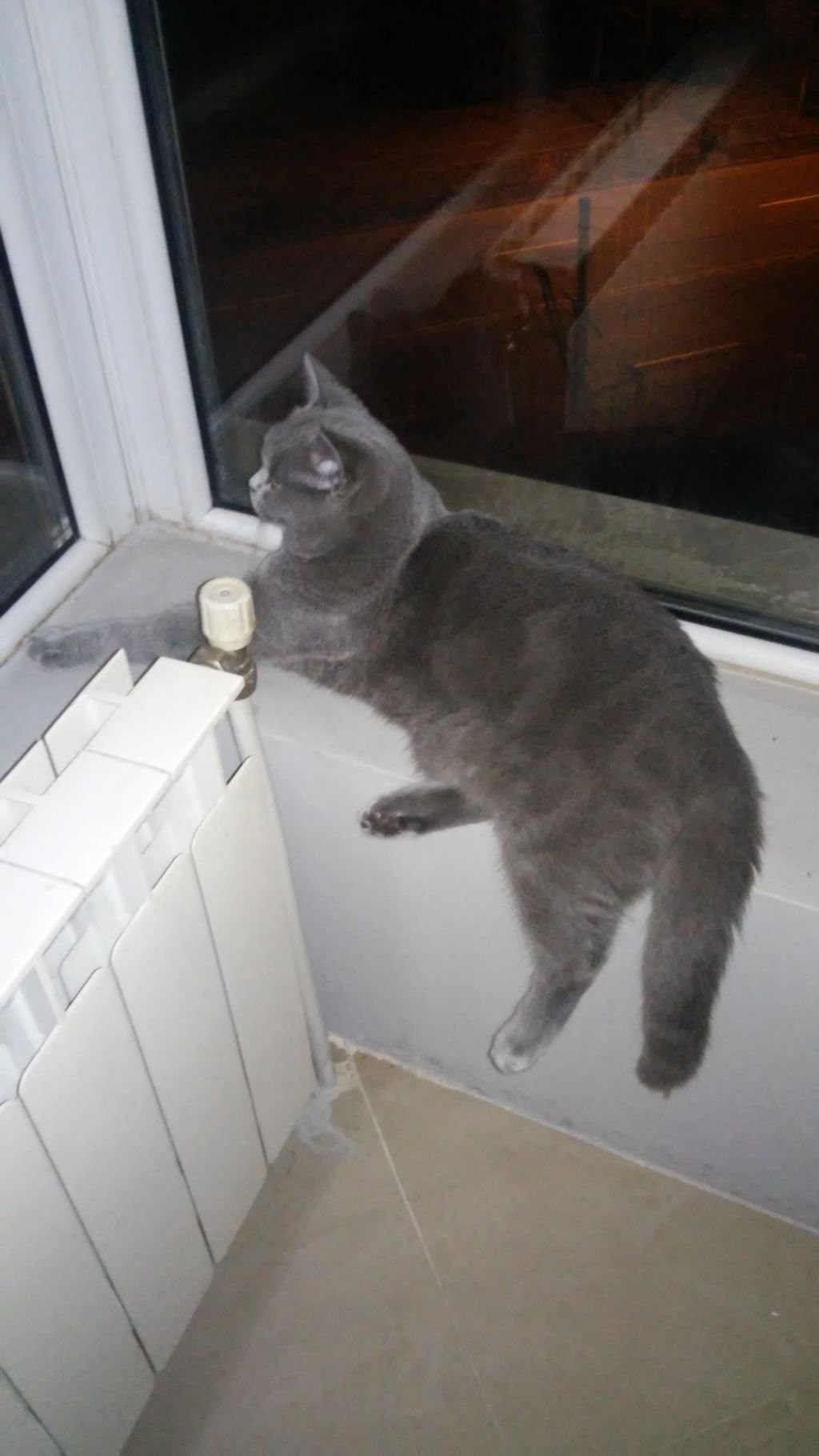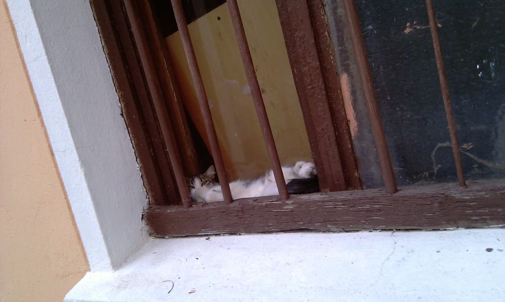 Странно как се е закрепил на това парапетче там до прозореца.