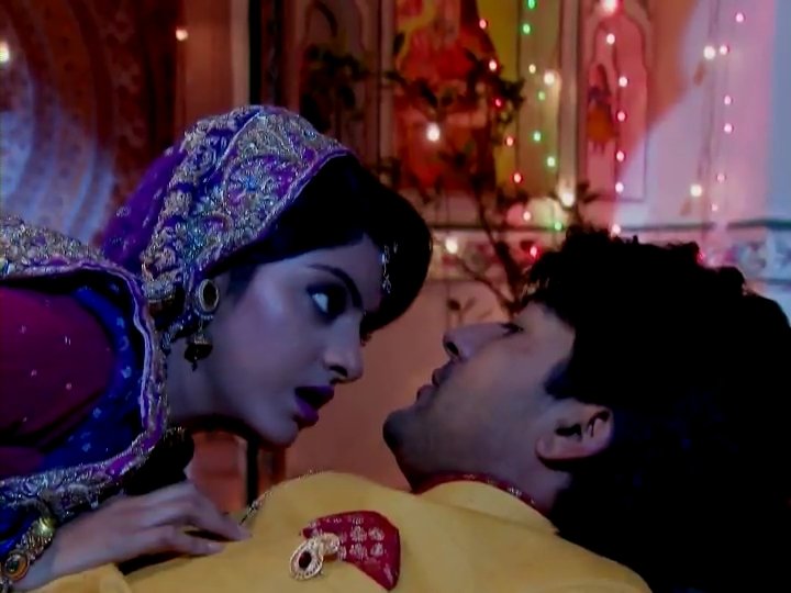 Сандия се качи на гърба на Сурадж и все едно го яхна - тогава се появи Сантош и тя побягна ...