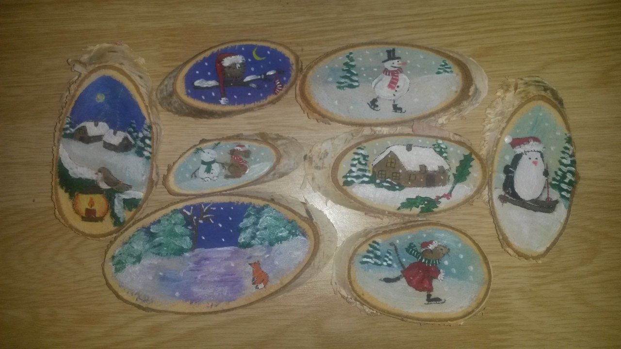 Благодаря, момичета! Рисувани са с акрилни боички и са доста мънички- най- малкото е около 3 см (зайчето) , най- голямото е около 6. Мънички са и ще им прибавя още нещо.