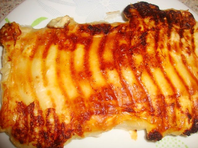 Баница на грил-тиган, пържолка, пържени яйца с чушка и лук, дърпано свинско(pulled pork) с домашен сос барбекю и яйца с чушка и лук.