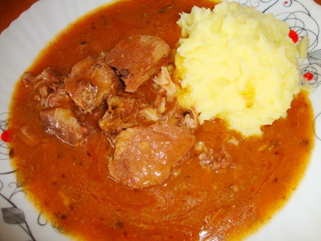 Винен кебап от жилави пържоли.Готвен в бавната тенджера.