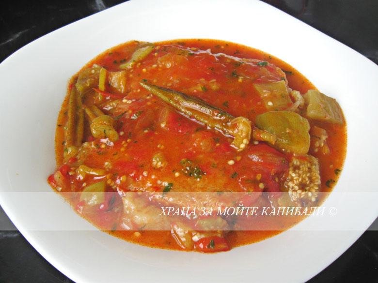 последната за сезона доматена манджа/яхния с пресни зеленчуци