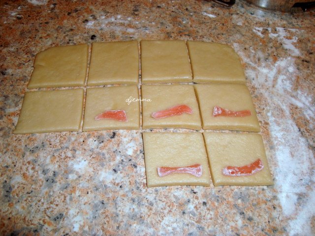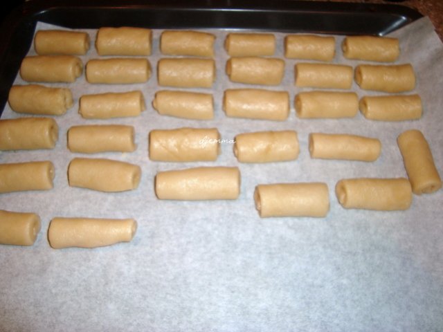 Забравих да сложа содата, сетих се чак когато правех топчетата. Разстлах тестото, поръсих содата и размесих добре. Ми, шматка съм си.  Embarassed