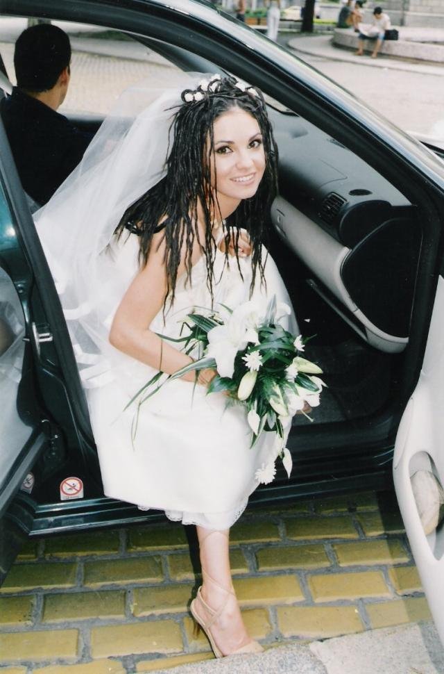 А за букета, аз също имах два ама просто, защото сключвахме брак в четвъртък и си бях взела един съвсем обикновен за пет лева, от розички само оформен като булчински, а на сватбата си хвърлих воала вместо букета да не ми го скъсат.