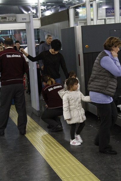 В началото си помислих, че мъжа с когото Туба си говори и се усмихва е някой от репортерите.  Rolling Eyes Но после в поредицата от снимки се вижда, че си е обикновен пътник. Може би й е казал нещо хубаво за децата и/или за нея, защото и майка й има лека усмивка на лицето Peace
