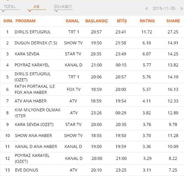 Вчерашния рейтинг.