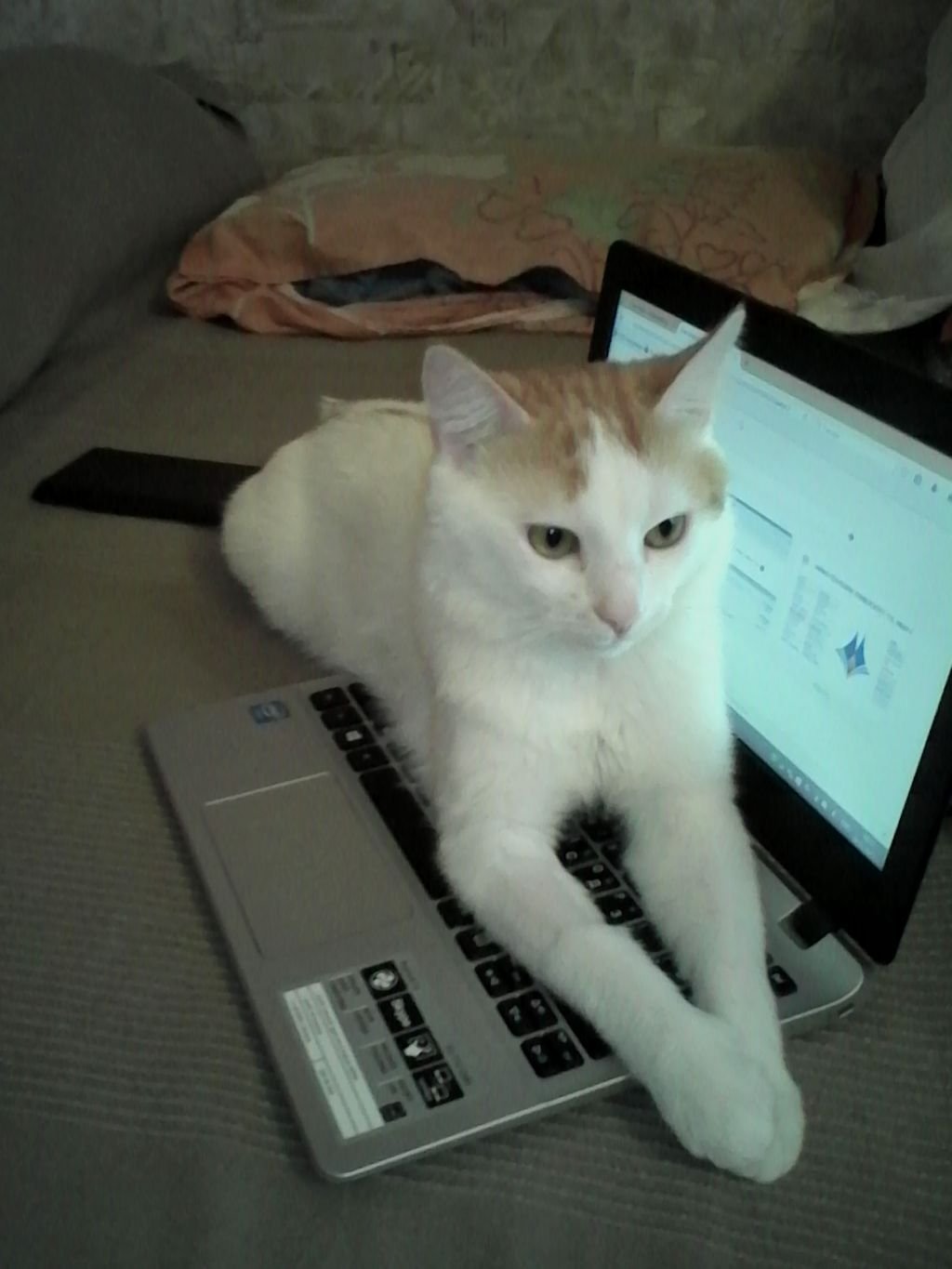 Аз не зная моя Мърти какво мисли по въпроса за спането ми на неговата спалня. Така да се каже леглото е нестандартно голямо, предвидено за същества снажни, с дълги снаги, над два метра надолу и почти два настрани, но уви, някак, когато се събудя посред нощ свита в поза тридневен зародиш, отвита, треперюща от студ и схваната, започвам да се притеснявам, не досаждам ли на котката си, когато спя на спалнята?