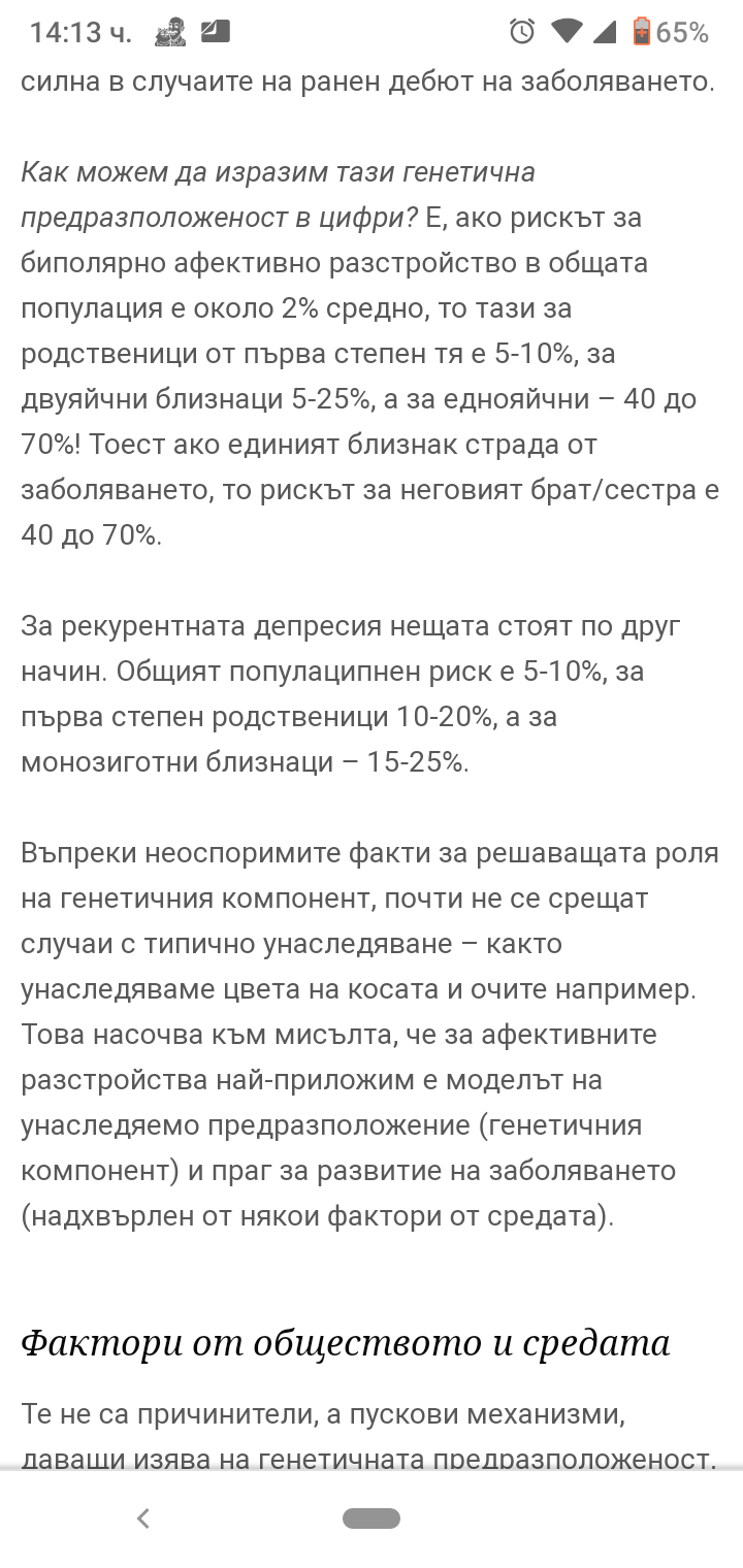 Редактирам и добавям. Докато се ровех да прочета повече по казуса на анонимен, ето на какво попаднах. Интересно е. Ще поровя и за другите психични заболявания и рисковете за децата от унаследяване и отключване на заболяване.