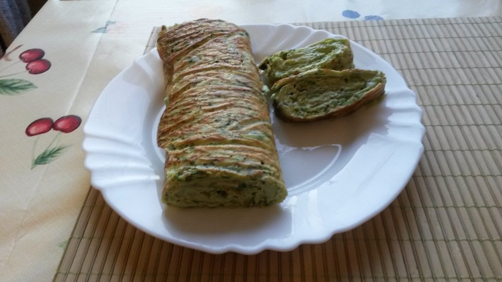 Руло от тиквички по рецептата на Кулинарен Еликсир. Пълнежът при мен беше мус от козе сирене и авокадо.