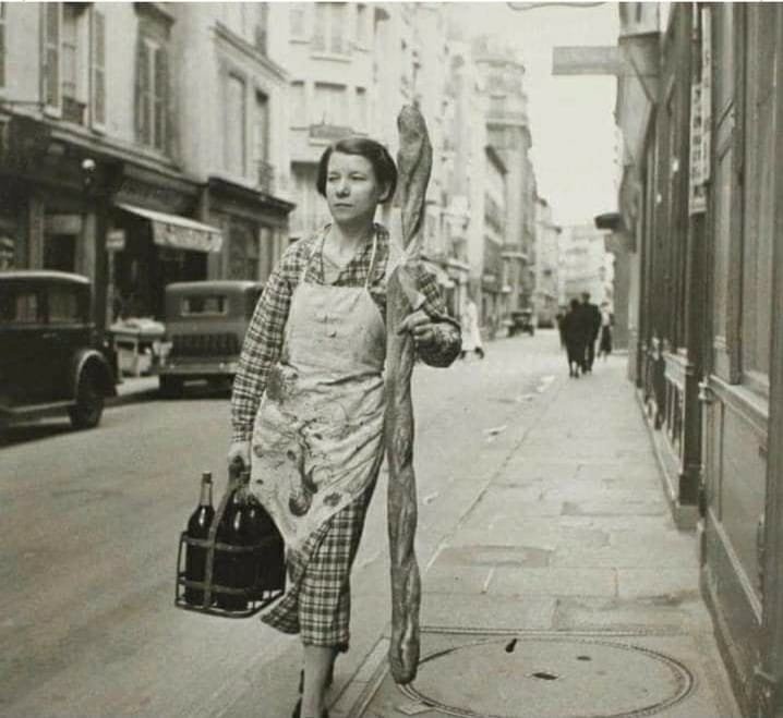 Французойка, 1945 г. с франзела и 6 бутилки вино 🙂 Ето от къде идва мечтата за французойките 😃