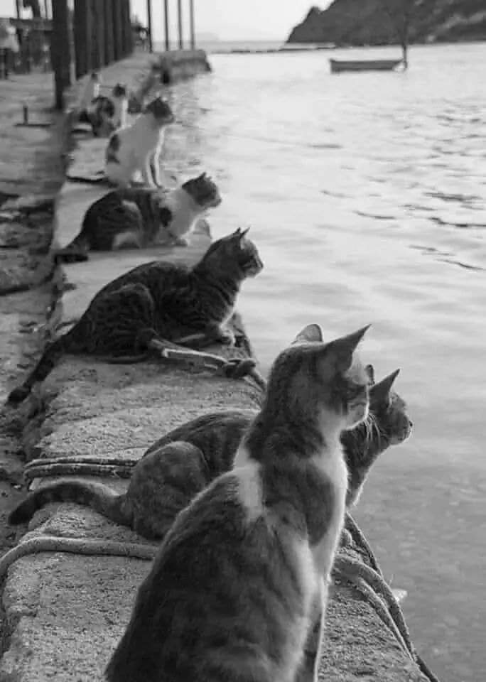 Коментара към тази снимка беше, че това са котки чакащи да се завърнат на пристанището рибарските лодки 😁.