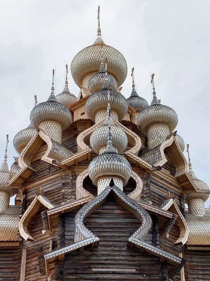 Това е дървената църква в Кижи (Русия). Смята се за осмото чудо на света.Направена е само с тесла и без един пирон.