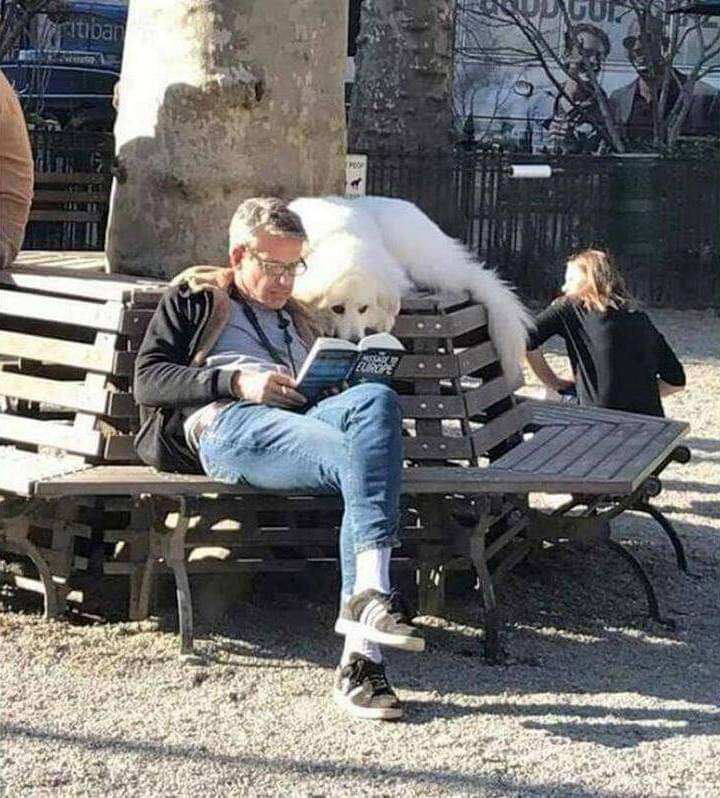 Всички кучета в парка тичат, само това чете книга със стопанина си. 😉