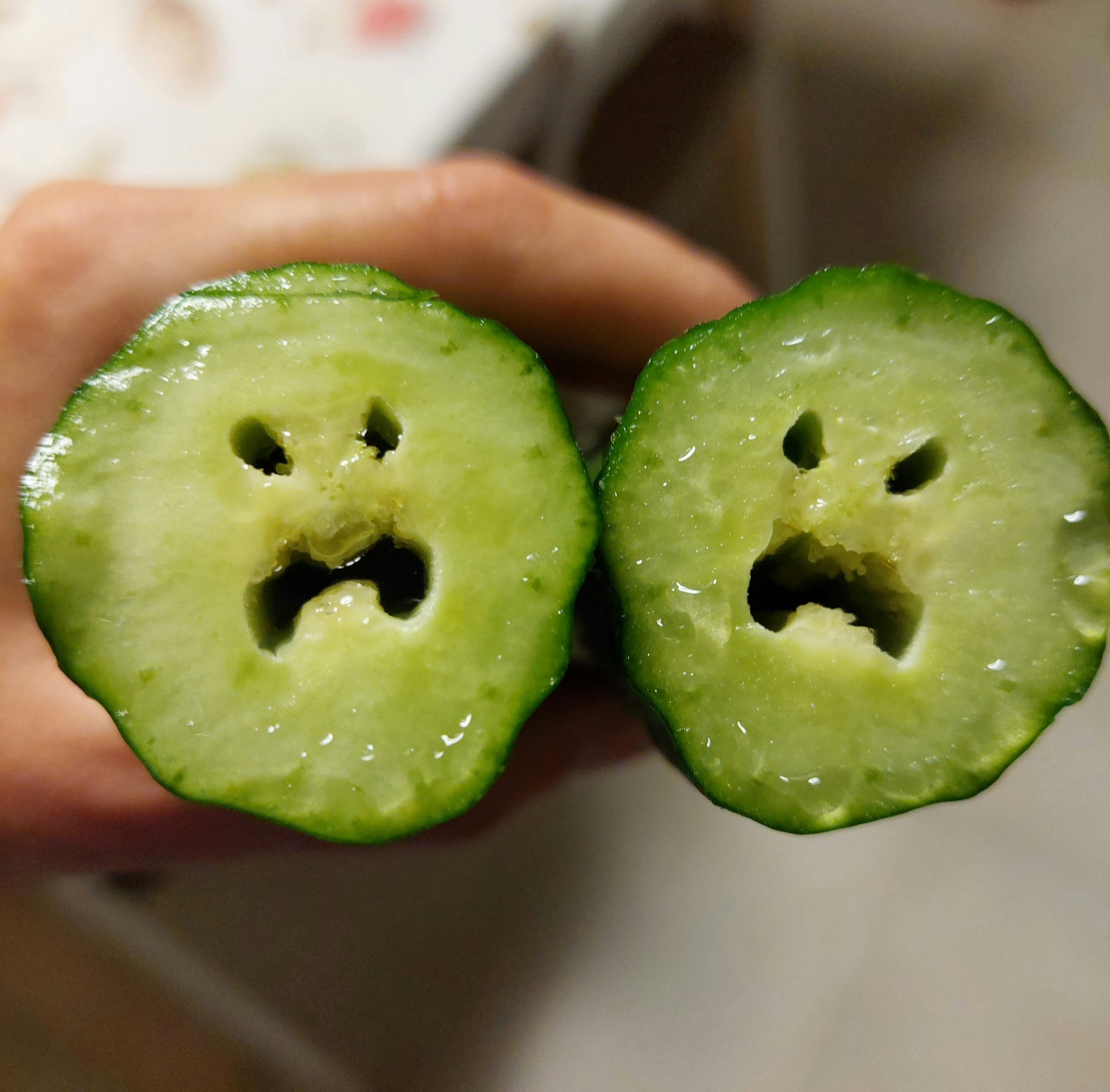 Срязах тази краставица за салата, но сърце не ми даде да продължа.