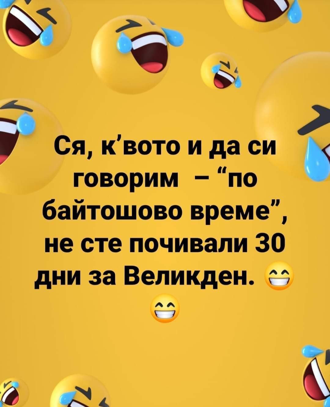 Да си ги кажем 60 дни. Grinning Толкова ще сме препили и преяли на Великден, че направо ще си останем почивка до Гергьовден.