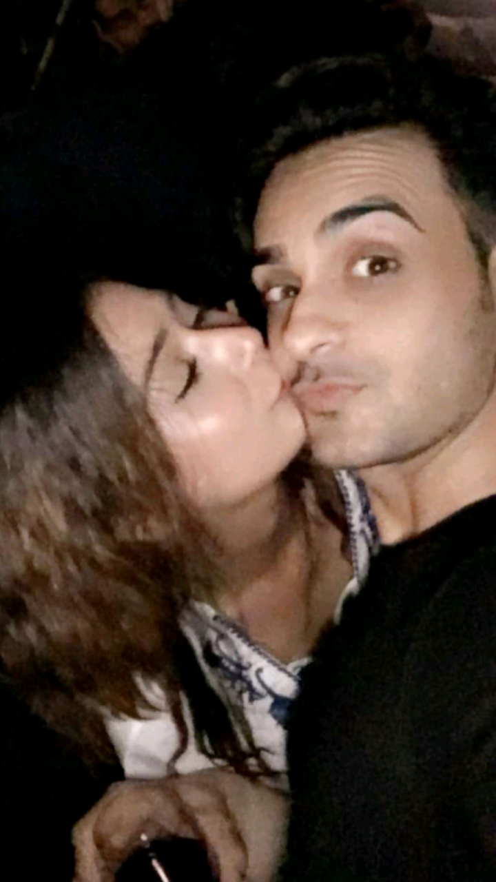 Ето снимка на Сара с партньора й Vivek Dahiya, с когото в момента се снимат в сериала Kavach!  smile3525 Kissing Heart Two Hearts