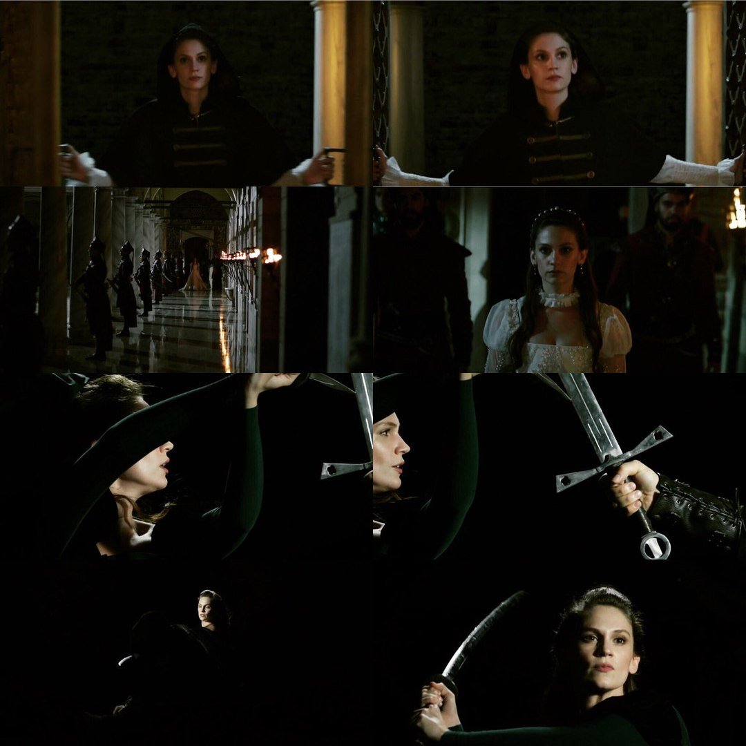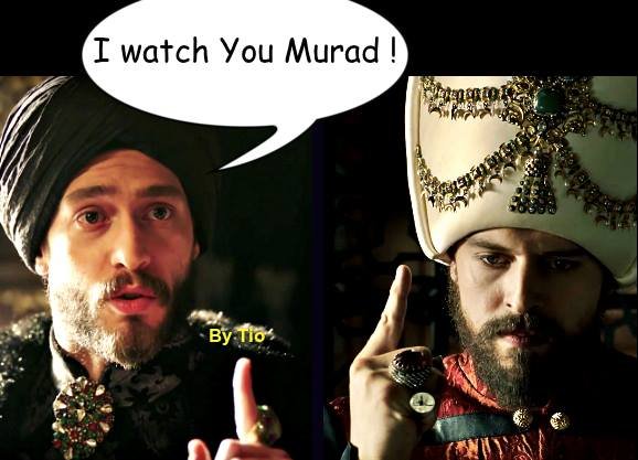 Във връзка с това, към което насочва колието, се замислям защо намеренията на Султан Мурад за властта се предхождат от думи за предателство? Интересно е и кой на него му дава този „урок“. Мурад се представя като Падишах, халиф, ще се сражава за разпространението на ислямския флаг. Не чуваме нищо „османско“. (Спомням си, че в най-първата сцена на „Кьосем“ малкият Ахмед разказваше за себе си като син на Султан Мехмед хан, роден 24 години след смъртта на Сюлейман хан, т.е. дори малкото шехзаде извежда потеклото си по линията на династията. Знаем отношението на Ахмед към династията по време на неговото управление; името на основателя на династията той даде на първородния си син.) Дали пропускът в думите на Мурад не е нарочен и да насочва към конфликта между Кьосем и Мурад?