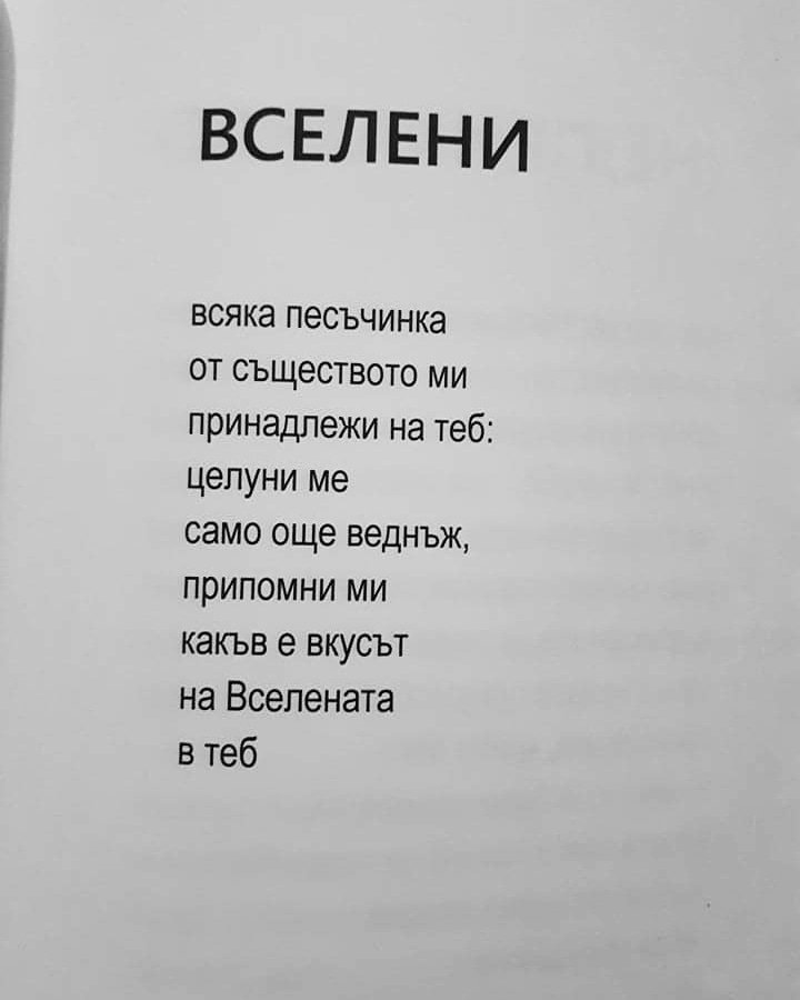 Писна ми! Честно! Сега ти ще ме слушаш. Ще ми дадеш това, което искам и нито частица по-малко! Ако ще ми даваш любов, дай ми я цялата! Не деля, чу ли? НЕ ДЕЛЯ! Ако още веднъж посмееш да ме вкараш някъде, където ще се почуствам маловажна и ще се осъмня в качествата и стойността си... ще те пребия! Ако ще ми даваш болка, ми я дай като хората. Не ме ли виждаш какъв ербап съм... Като кърви, да кърви. Направи ме глупава в тоя момент, направи ме влюбена. Аз не зная как. Ама ти ще се справиш. Ясно ли ти е? Ако пък толкова ти се свидят тия двете ме направи безчуствена! Да не потрепвам, да не помръдвам. Да не изпитвам нищо от тях. Да не ми пука. Да съм лед. Било по-лесния вариант чувам. Дай да видя мога ли така. И без много лигавщини, че се обривам.