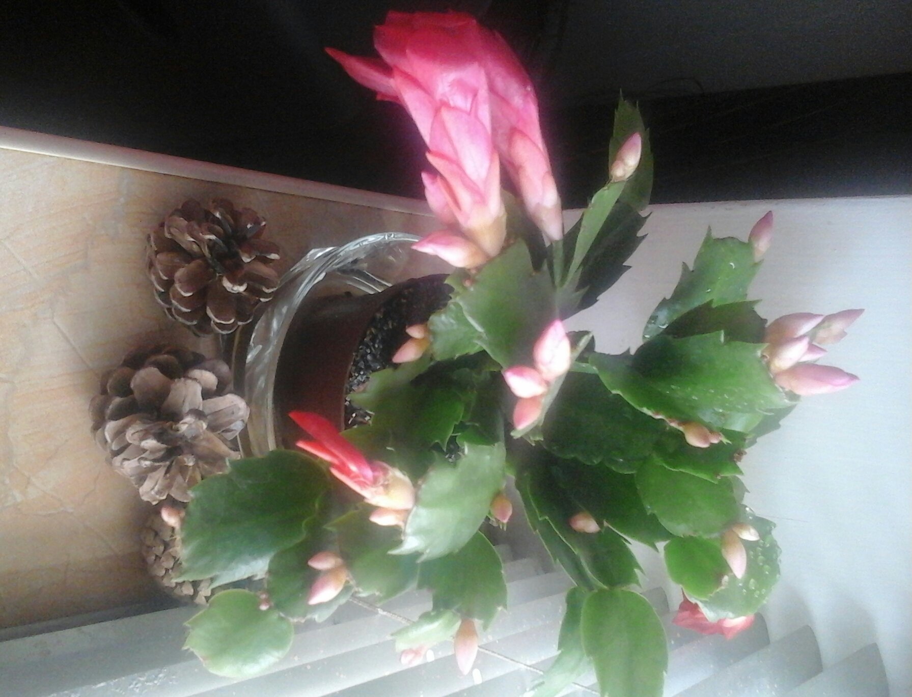 Привет.Влизам за съвет. Преди седмица си купих коледен кактус.  Heart Eyes Преди години имах,но беше голям и нямах ядове с него. Този обаче май не е добре.  Rolling Eyes Сложих го на прозорец,но слънце не го пече,не е и много топло в помещението. Поливам умерено,така четох,но вместо да му цъфтят тези пъпки,те взеха да падат преди да са се развили. Confused Уж се гледа лесно този кактус,а аз май ще го уморя.  Embarassed Дайте съвет какво да го правя. Слагам го в скрит текст ,че през таблета се измъчих с тази снимка.  Blush