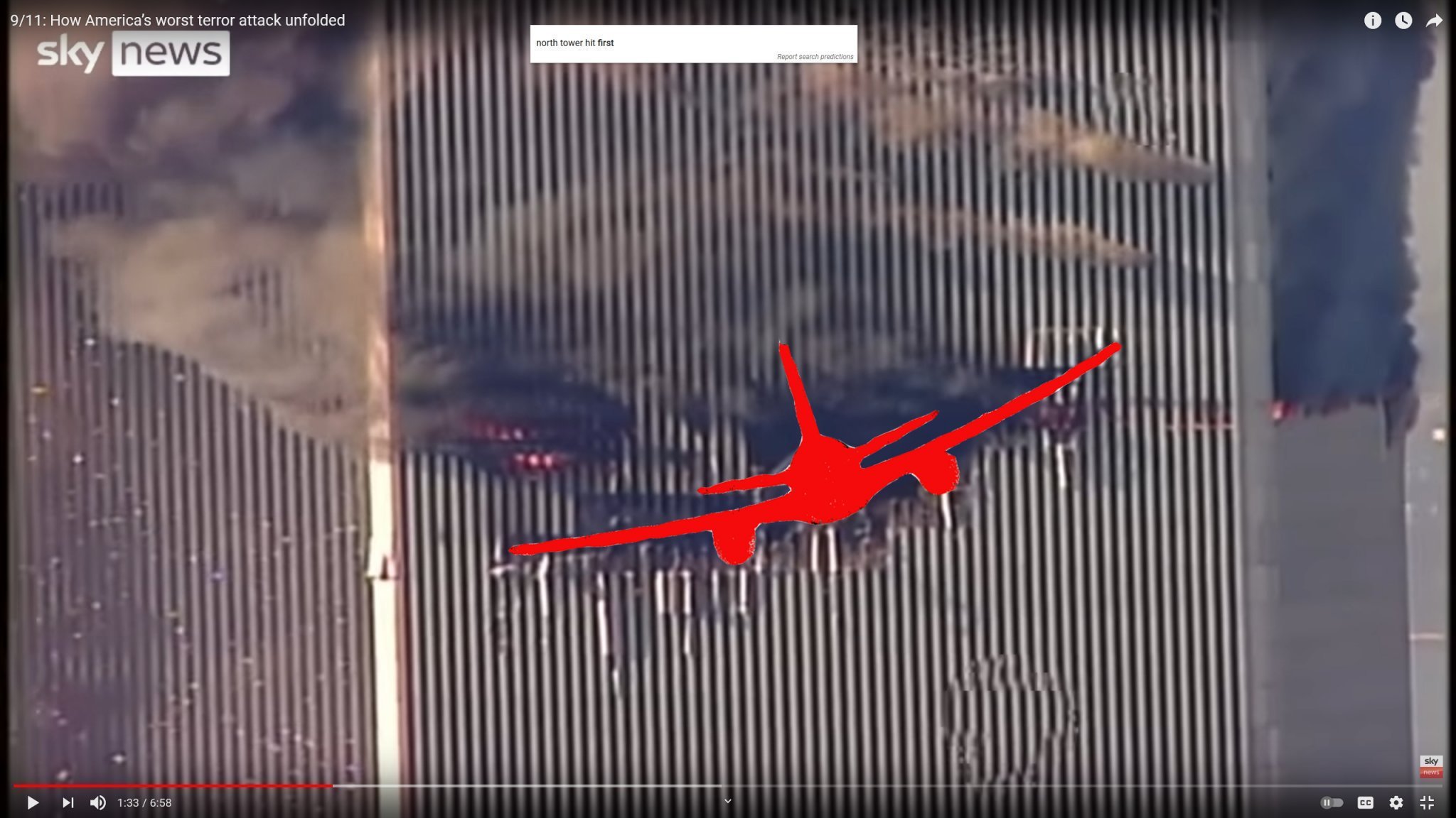 Аз тогава го гледах на живо. Пуснах по случайност телевизора и по почти всички канали това вървеше. Първата кула беше вече ударена и видях как самолет удари втората. И понеже беше картина отдалеч се виждаше как самолета приближава кулата не за 1-2 секунди, а за няколко, съвсем добре се виждаше. След като вече е ударена едната при втората става ясно, че не е някаква случайност, а е умишлено.