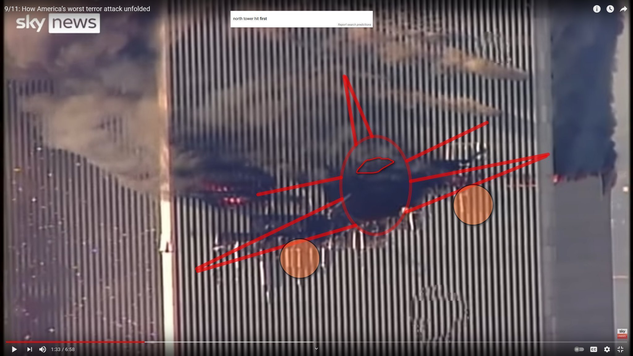 Аз пак да кажа, има стотици очевидци, и от оцелелите и от минувачите отвън, хората ВИДЯХА, как се врязва самолета в кулата, не мога да разбера защо продължава този спор.