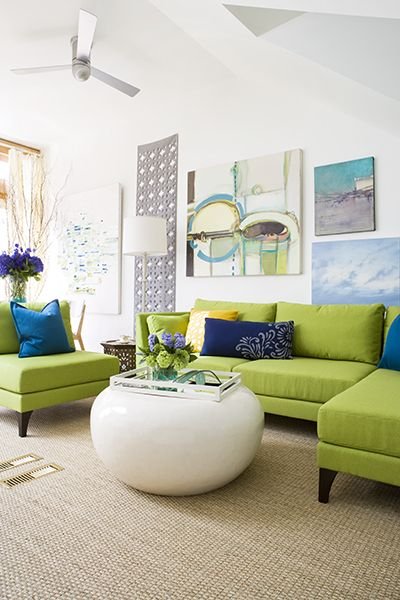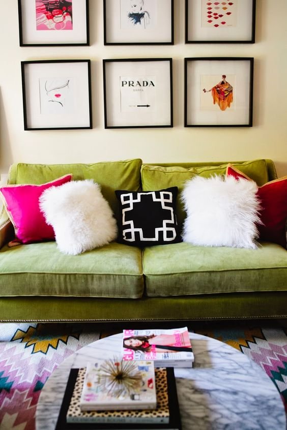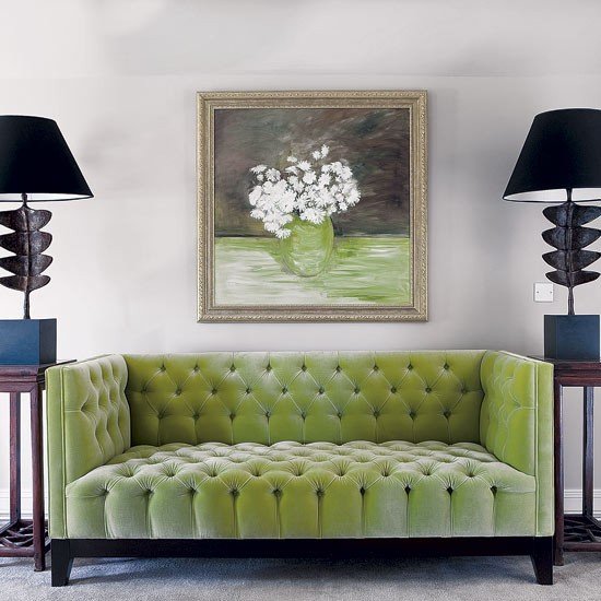 Наистина е важно какво точно си представяш под "зелен диван" и каква е останалата част от стаята като стил, цвят.... Имаш ли вече нещо налично или всичко е още идейно?