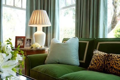 Аз бих сложила зелен диван. Не бих сложила чисто зелени завеси обаче. Бели със зелено и някакъв друг цвят - да, на едри щампи. Общо взето гледам да комбинирам по три цвята, че иначе ми става скучновато.