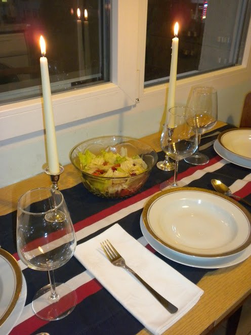 Ето и нещичко от днес, съвсем импровизирано и набързо (масата е грозна, но още не ѝ е дошъл реда да си ходи). Най-хубавото е, че детето ми помага както за готвенето, така и за подреждането на масата. Толкова съм горда с него, а е на 2г. и 8м.  Hug