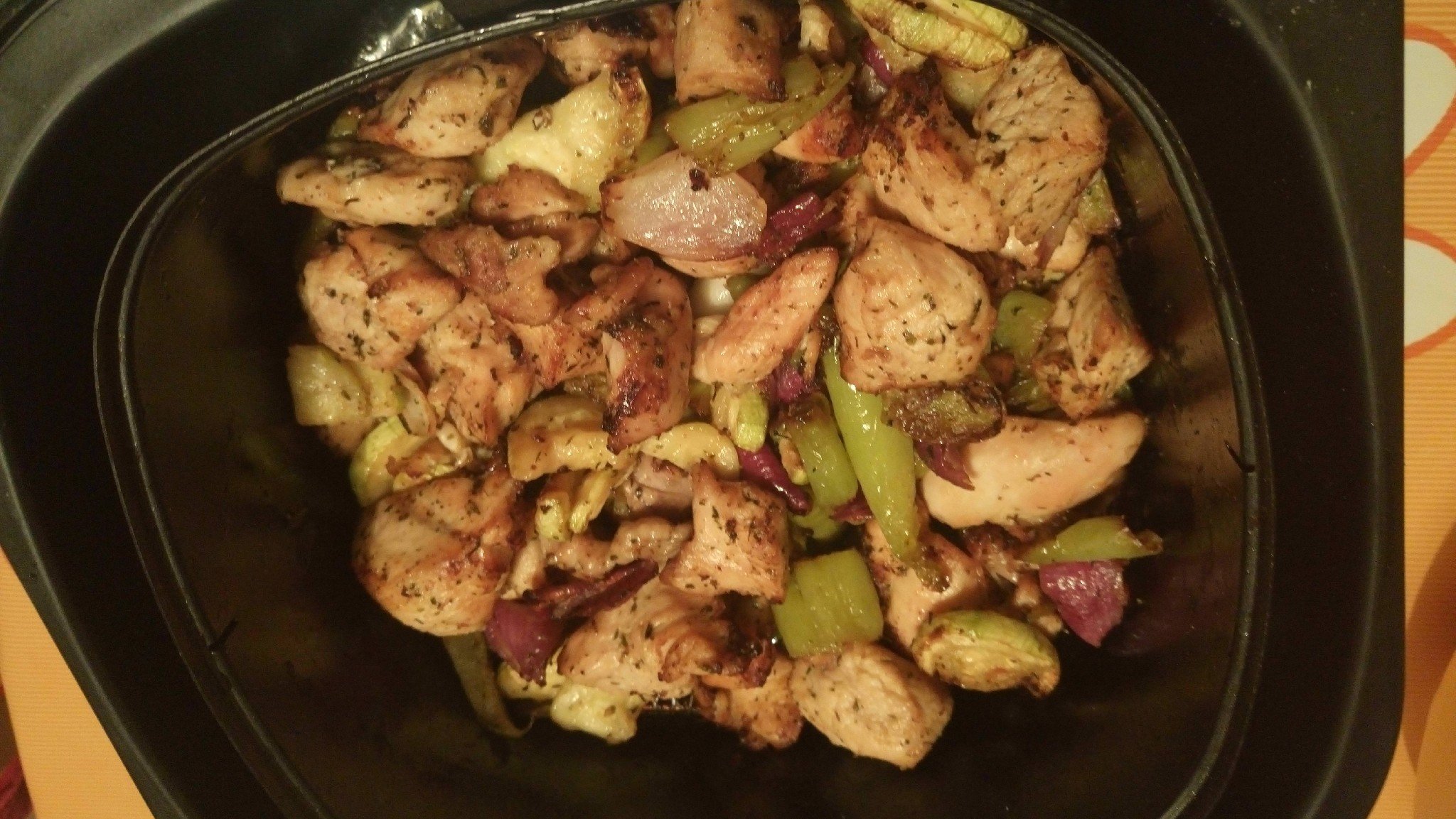 Заедно, всичко мариновах предварително в малко олио и подправки по желание.