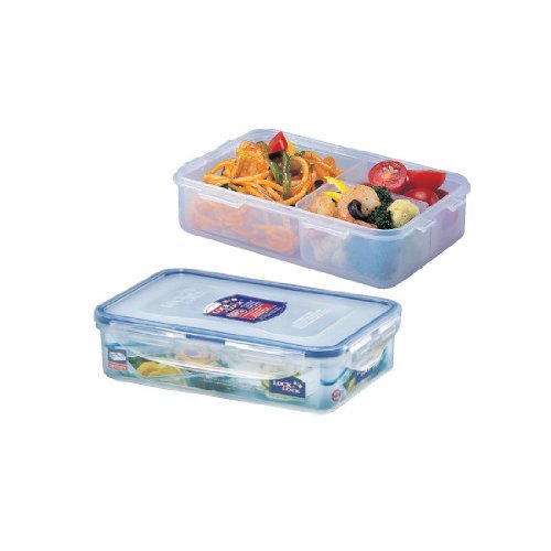 Последната кутия е с 3-разделителя, но те могат да не се слагат или да е разделено само на 2, както е в конкретния днешен случай. Ляга на дъното на чантата и всичко от снимката(без шишето за вода) се пъха идеално.