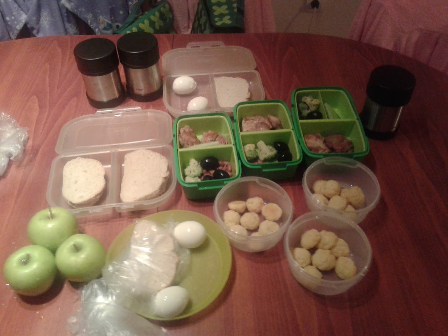 Честно казано, ако слагах всеки ден готвена храна ще ми дойде в повече. Моето дето (по-голямото) харесва храната в стола, но избирателно. Затова купуваме купони 2-3 дни в седмицата, а за другите дни и слагам и обяд. Но всеки ден слагам плодове, ядки и десет за закуски и междинни хранения. Днес е денят, в който няма да хапва в стола.