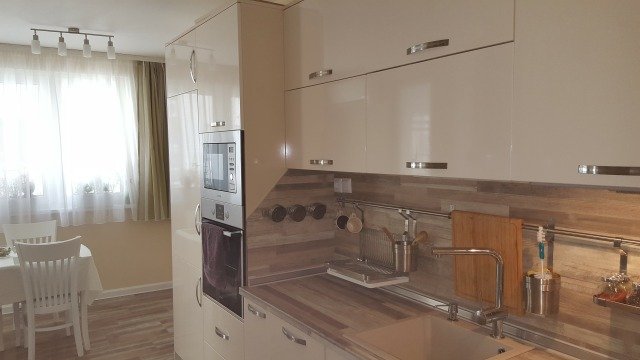 Добро утро! Бях обещала да пусна снимки на кухнята ми. Понеже не мисля, че е много по темата и от гледна точка на дизайн не е нищо особено, пускам я в скрит текст. Вече я ползвам активно и е много практична, всичко ми е под ръка и е лесна за чистене, така че съм повече от доволна. Снимала съм по време на готвене  Embarassed и сега виждам как е метната кърпата, както и че има неща в мивката.