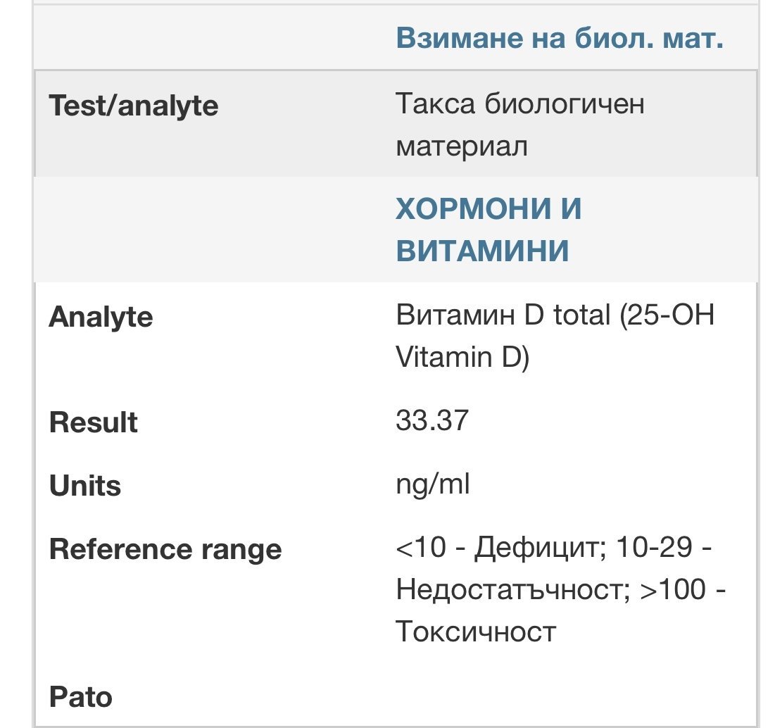 Здравейте! Включвам се да покажа резултата от вит.д При положение,че не излизам на слънце и работя в едно мазе, очаквах да е под 10. Взела съм спрея на better you, и тепърва ще ходя навън на слънце. Голям дефицит ли се води?