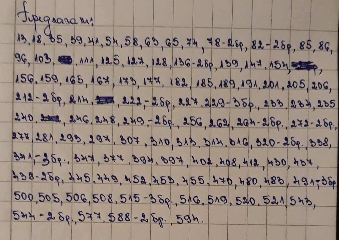 Това са ни повтарящите, но вече нямаме 108, 169, 192, 257, 341, 393, 412, 508, 520, 535 и 537