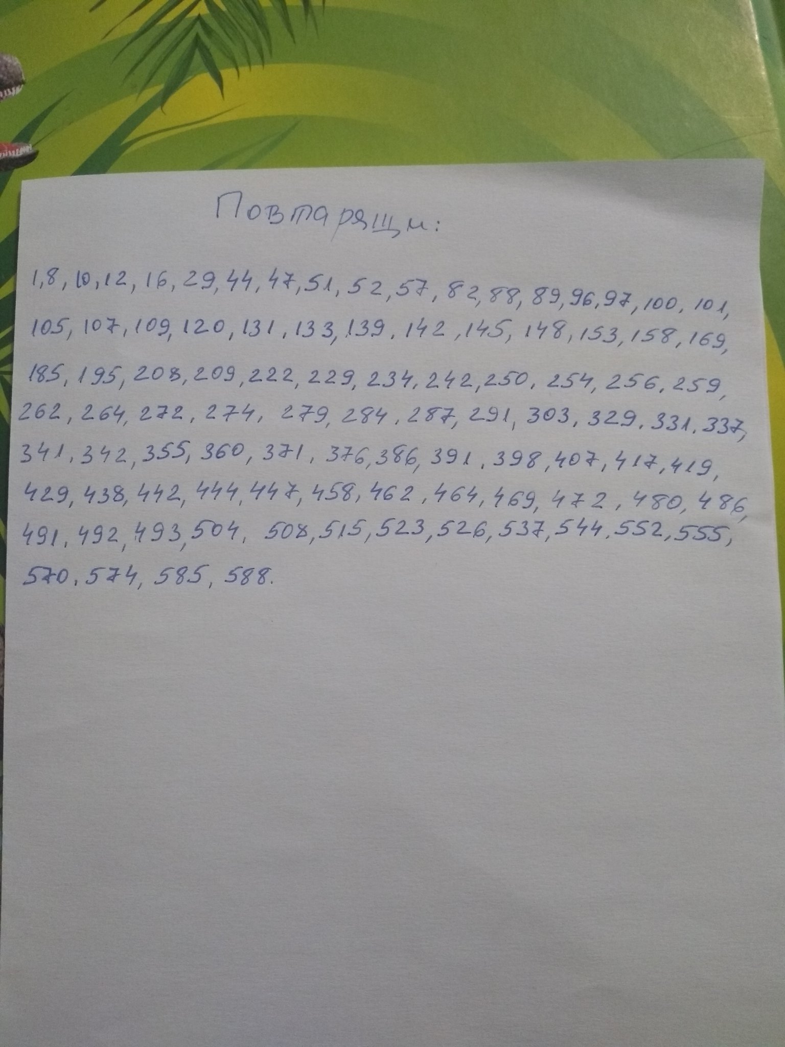 Повтарящи се: 8,21,27,86,89,91,179,185,262,347,418,433,465,469,500,556,569