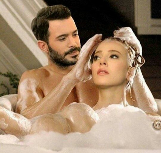 Барыш, и без того затуманенным взглядом, вновь посмотрел на Эльчин, она опять нежно улыбалась ему с легким румянцем на щеках и вновь пошли в ход руки Барыша: волосы... шея... талия... стена... ласковые руки Эльчин на его руке... и вновь страстный поцелуй, на этот раз Эльчин была более раскованной, она открывала свои алые губки и они тонули в губах Барыша, каждый ощущал тепло друг от друга и дыхание друг друга. Такое ощущение, что поцелуй длился вечно, они даже не слышали как режиссер прокричал "стоп, снято!" и продолжали свой страстный поцелуй, вокруг них все горело. Левая рука Омера (которую кстати было не видно в камеру!) утонула в волосах Эльчин, а затем нежно спустилась вниз по спине... Футболка Эльчин была очень тонкая и ощущение было такое, что он гладит ее по самой коже, она же в свою очередь сжимала своими хрупкими пальчиками его мускулистые руки, отчего Барыш возбуждался еще больше... У них было ощущение, что вокруг никого нет.
