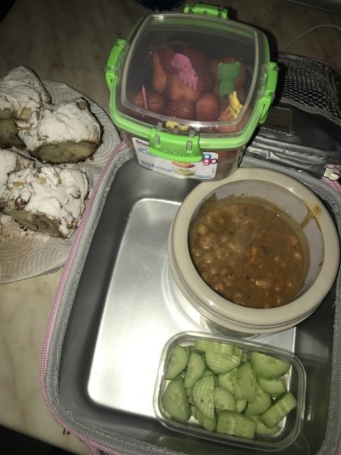 Боб яхния,с краставички,ягоди и домашен кекс-малката носи в училище по 4-5 парчета кекс,защото всички деца искали  Laughing