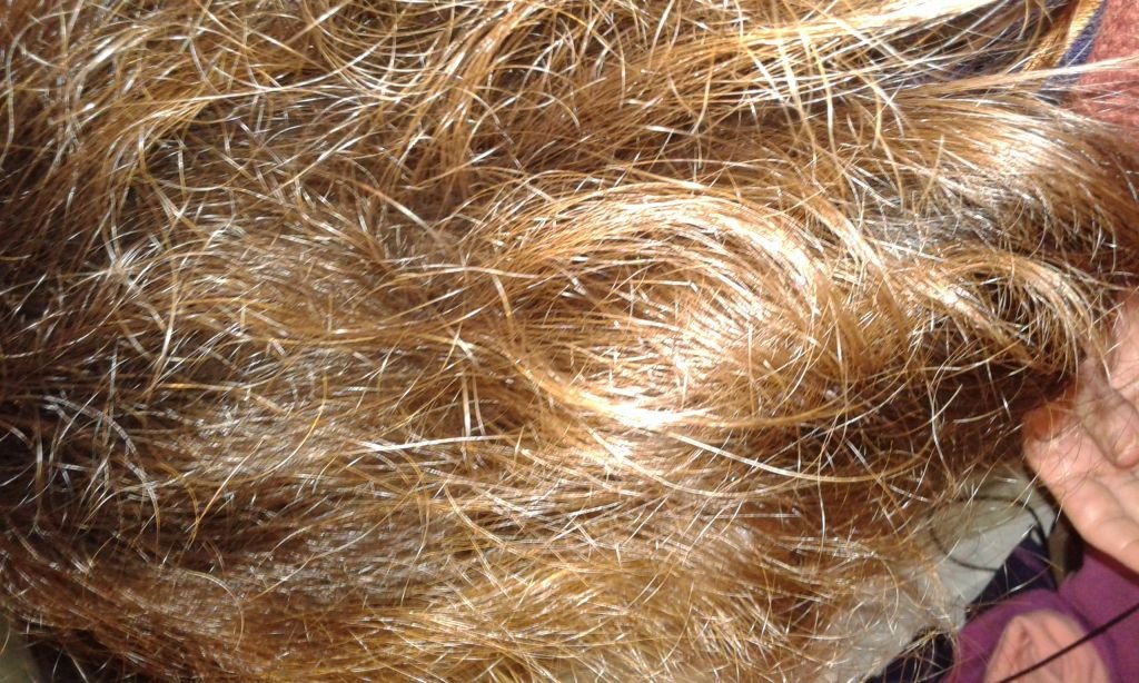 На мен ми изглежда изтощена. По крайщата изсветлявана ли е?