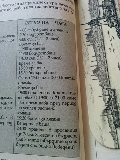 Според книгата, е трябвало да премина точно тогава на следващ етап - 4-часови цикли, а не 3-часови, които са за малки бебета, защото стомахът на бебето е с по-голяма вместимост, бебето е много по-развито, с по-дълъг период на будуване през деня и т.н.