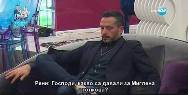 Рени я оставиха,защото ще нареди още бисери.Помня как Миглена я описа като каза,че тъкмо си била казала,че Рени е приключила с простотиите и тя бълвава нови такива Wink
