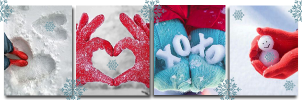 Сняг, сърца, снежинки, синьо, снежно човече, следи.
