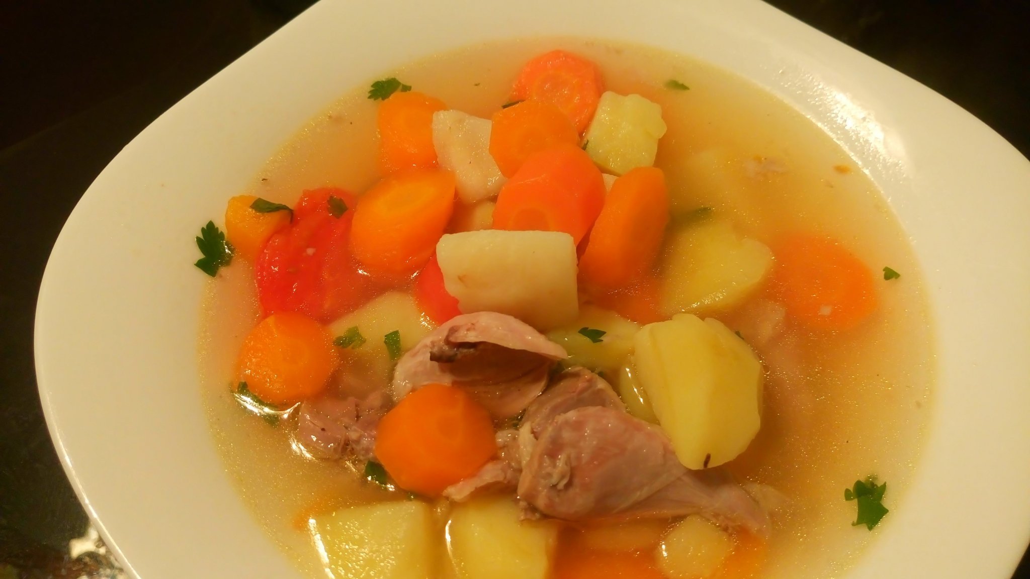 За телешкото варено ли? Първо варя джолана 1 час с дафинов лист и бахар, после отварям, обезкостявам, нарязвам, слагам картофи, моркови и нарязана глава целина, сол и черен пипер и пускам на 10 мин. на Manual.