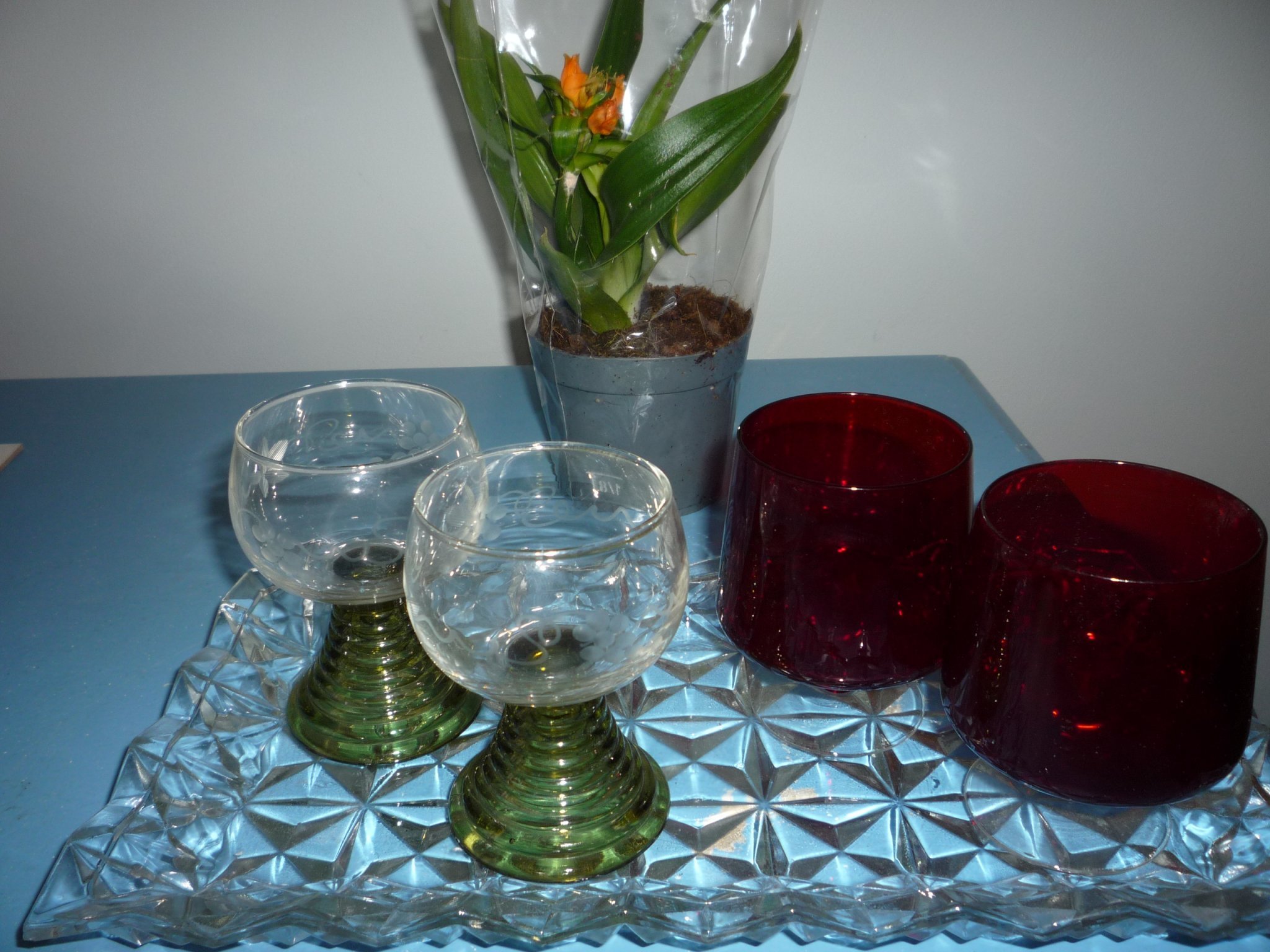 Сега ще покажа и другите си стари находки оттам, и как с тези чаши, със зеленото столче, ми се получи една аранжировка на маса :