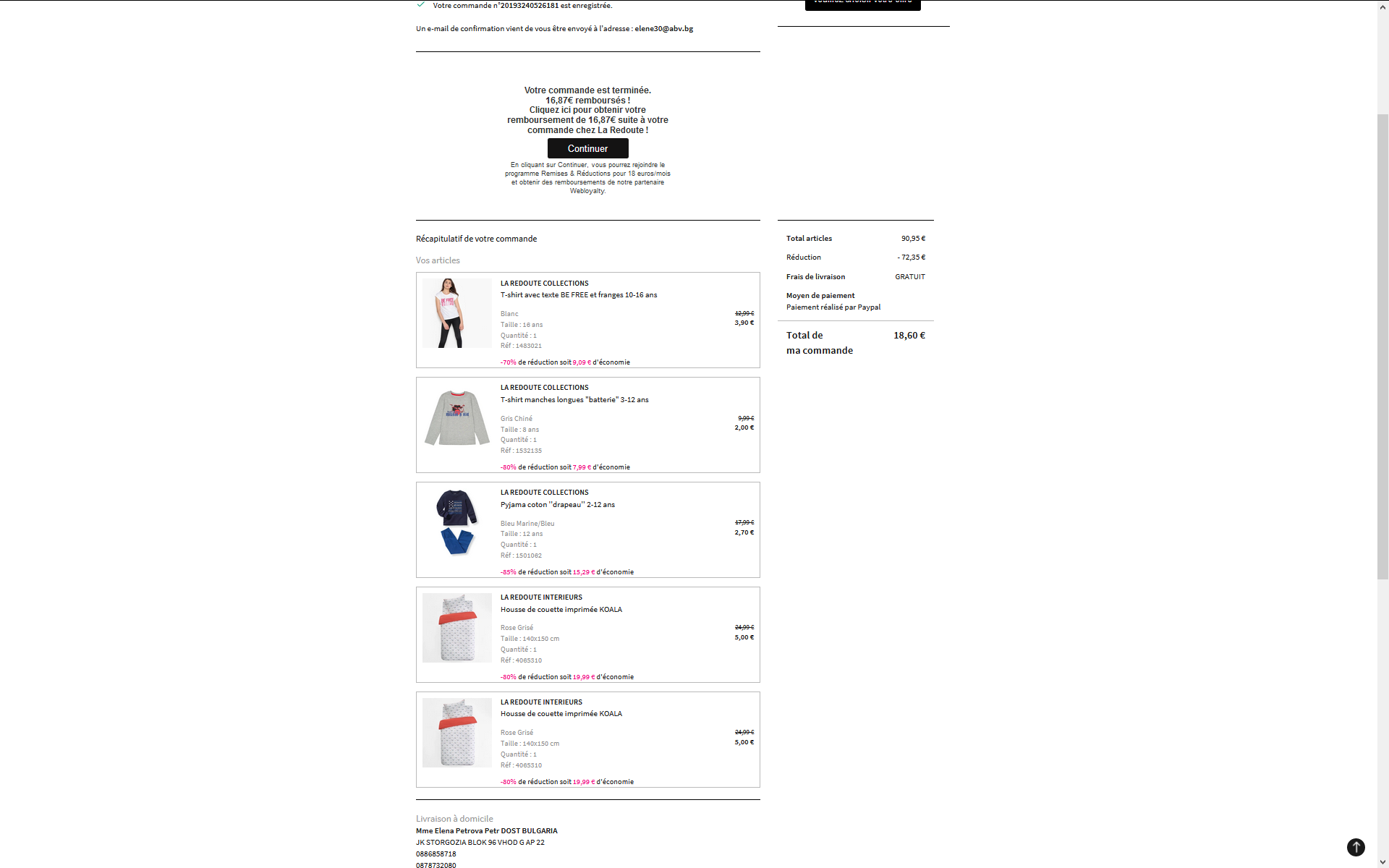 Вчера Laredoute са ми върнали парите. Странно, защото имам отказ на диспута от paypal с причина, че парите вече са ми възстановени.