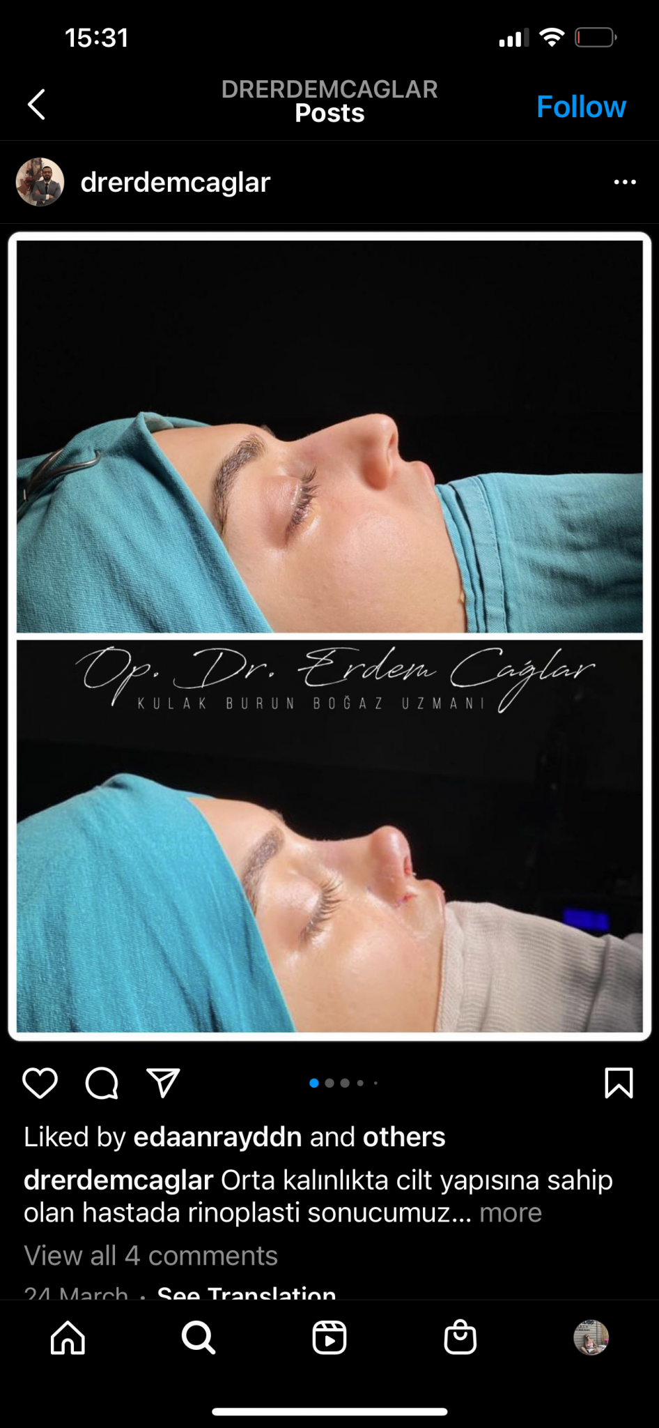 Никога не гледай и преценявай крайния резултат по снимки от операционната. Носът много се променя и това е нормално. Погледни Caglar, Balikci, Celebi. На Нихат не ми харесват доста негови носове, той и не качва всичко, има недоволни и от него.